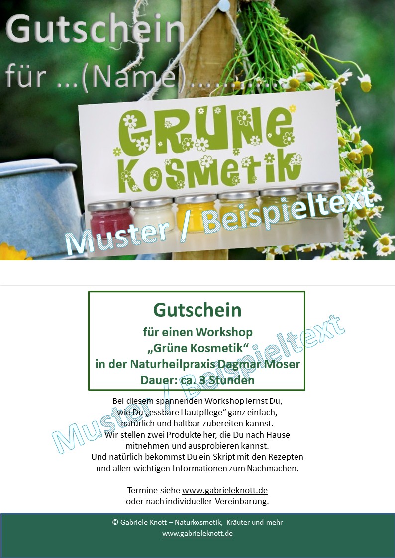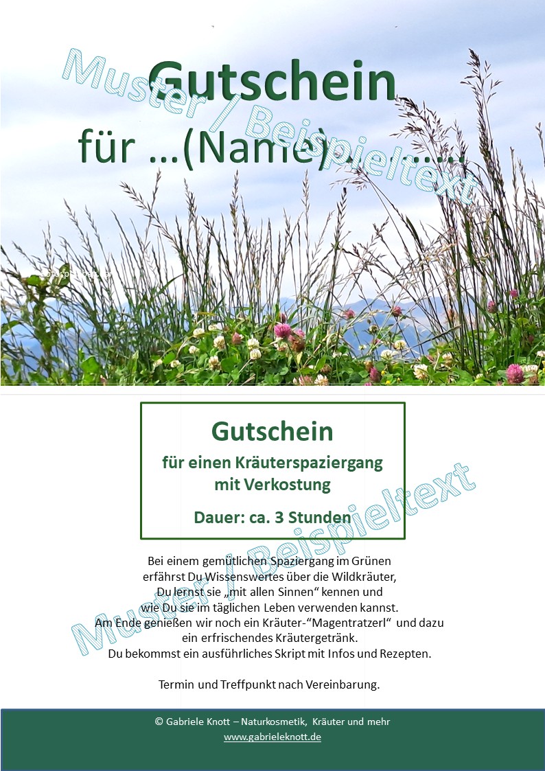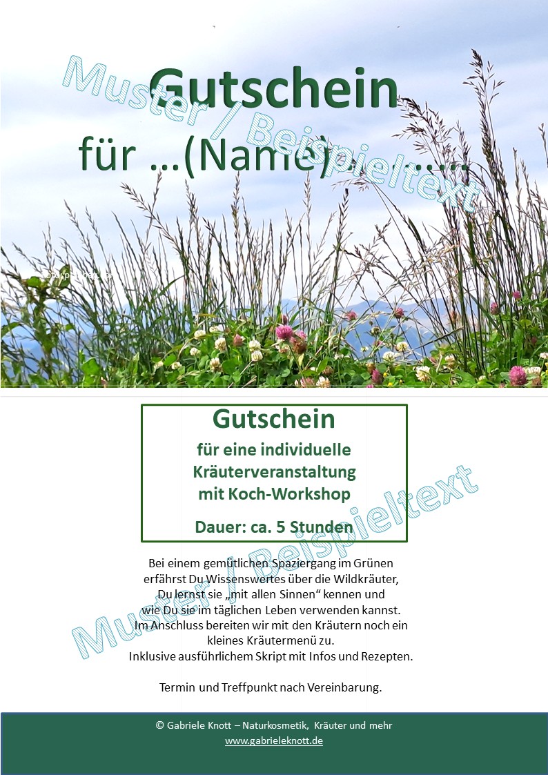 Du kennst jemanden, der sich für Kräuterthemen oder DIY-Naturkosmetik interessiert? Dann mache ihr oder ihm doch eine Freude mit einem Geschenk-Gutschein!